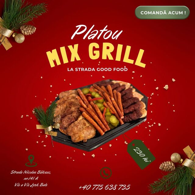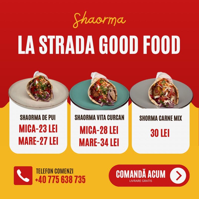 CALL +40 0775638735🍔 LA Strada – Balș este locul ideal dacă vrei gustări rapide delicioase și mâncare gătită ca la mama acasă, în fiecare zi! Situat în Balș, județul Olt, aici te așteaptă un meniu variat de fast-food – de la burgeri suculenți, shaorma aromată și cartofi crocanți, până la preparate speciale schimbate zilnic sub forma meniului zilei, cu feluri principale, garnituri și deserturi la prețuri accesibile. Conceptul combină viteza servirei cu savoarea preparatelor tradiționale și moderne, astfel încât să îți găsești mereu ceva delicios pentru prânz, cină sau o gustare între mese. Locul este perfect atât pentru o pauză rapidă atunci când ești pe fugă, cât și pentru o masă de zi cu zi savuroasă.