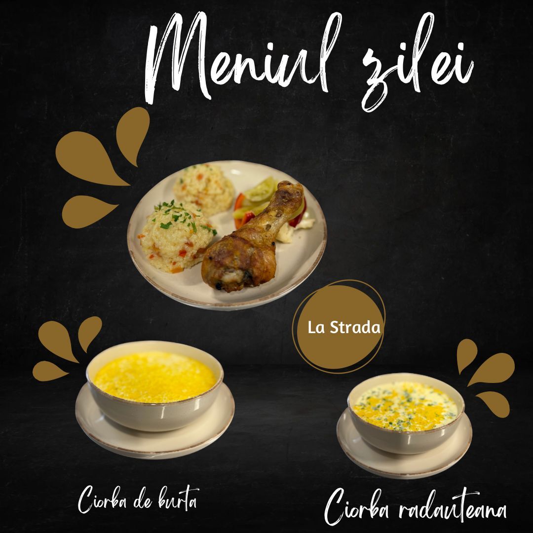 La Strada din Balș te întâmpină cu un Meniu al Zilei variat și adaptat fiecărei zile. Vei găsi mereu o combinație apetisantă de preparate gătite cu grijă, garnituri savuroase și deserturi delicioase, pregătite proaspăt și servite rapid. Ideal pentru o masă consistentă la preț corect!